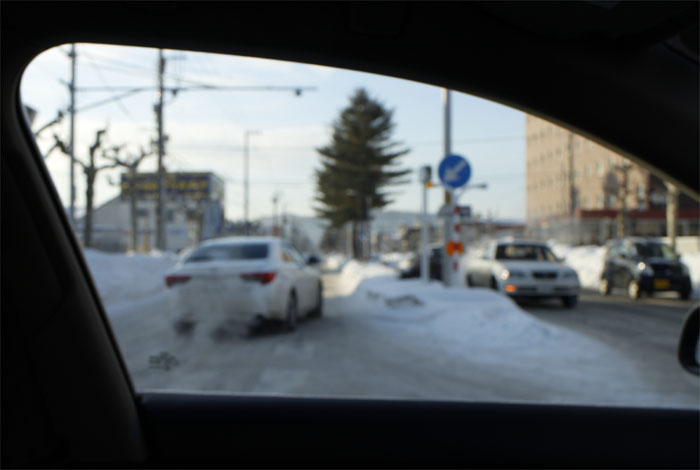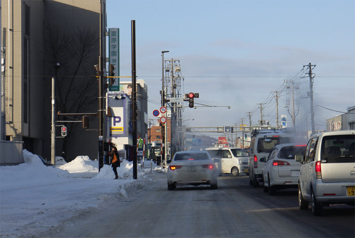 午前7時50分、北4条通りの国道39号交差点から緑園通り方向