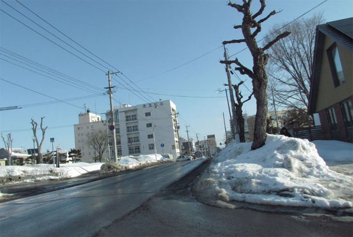 午前7時40分、松浦水産駐車場裏の通りを北3条通り側から北4条通り方向