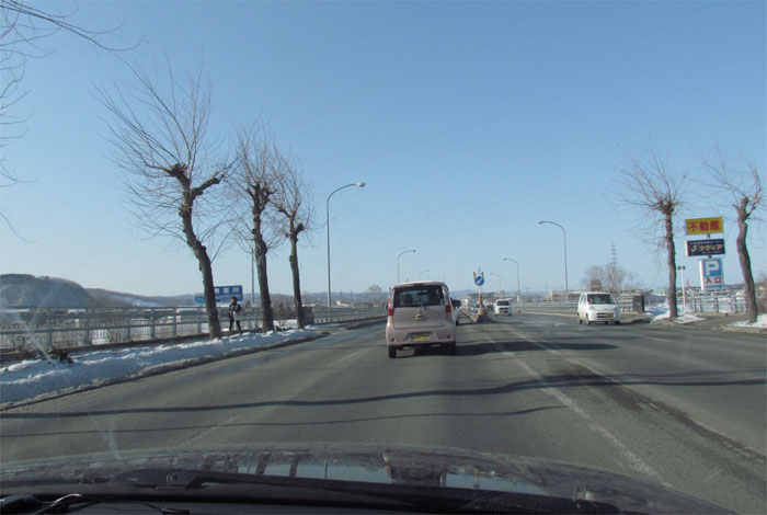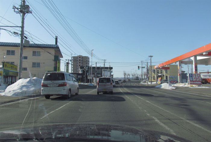 午前7時50分、とん田通り、北見中央病院