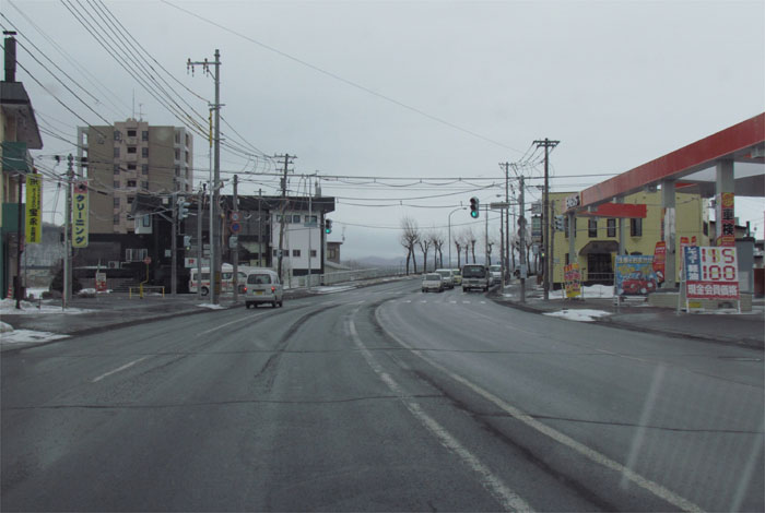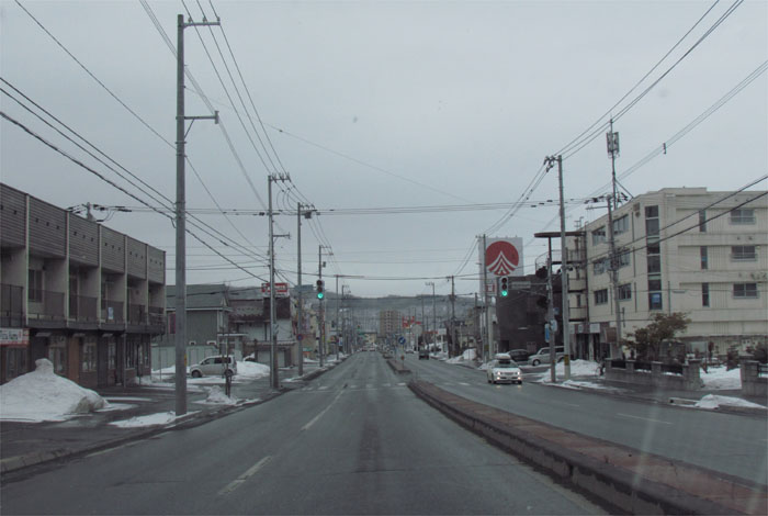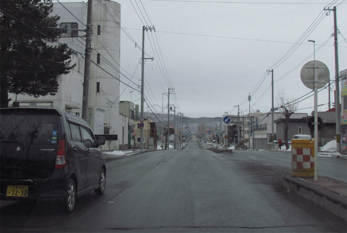 午前7時50分、とん田通り、北見中央病院