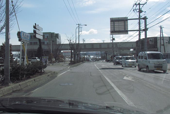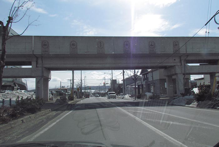 前方がJR石北本線高架橋、写真右が北見駅方向