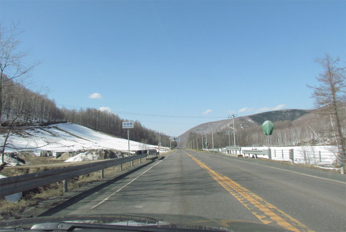午後2時20分、国道242号、金華峠頂上側から下りで生田原の清里方向