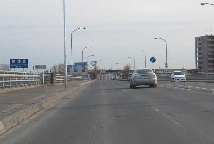 写真中央、堤防の向こうは無加川を挟んで工業技術センター前の西5号線南大通り交差点