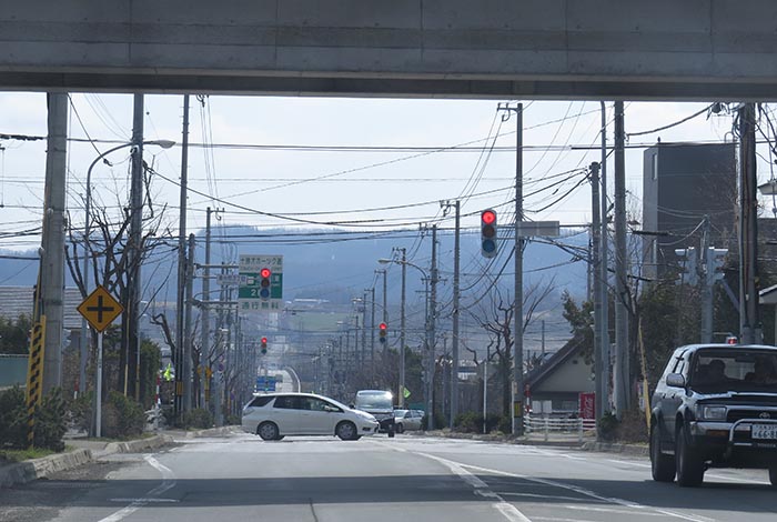 前方がJR石北本線高架橋、写真右が北見駅方向