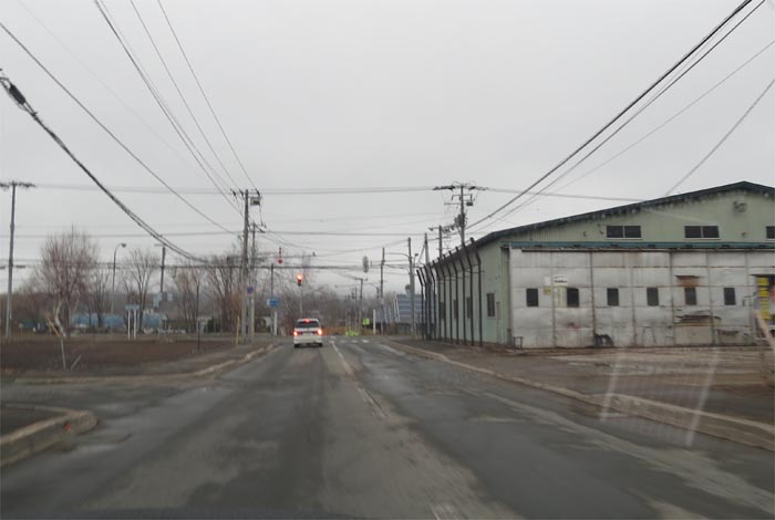 南岸通り、野付牛自動車学校前、奥がとん田通りの交差点