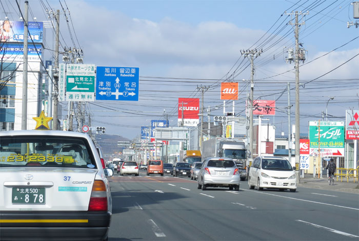 国道39号、北見トヨペット前からとん田通り交差点方向