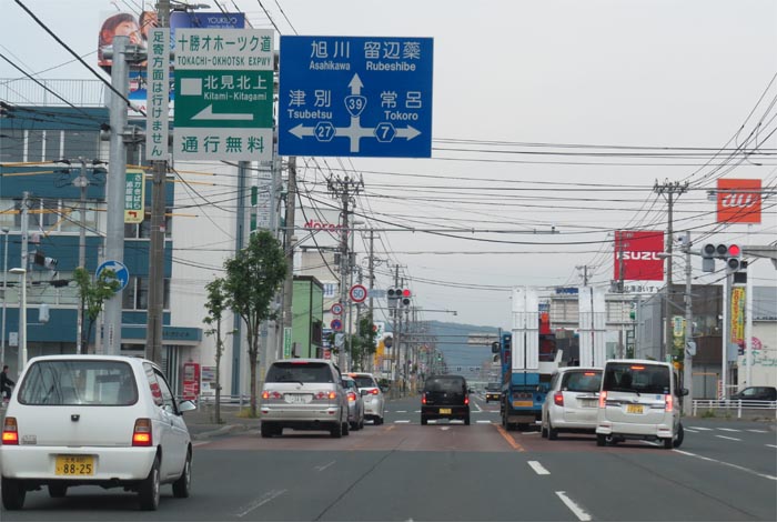 国道39号、北見トヨペット前からとん田通り交差点方向