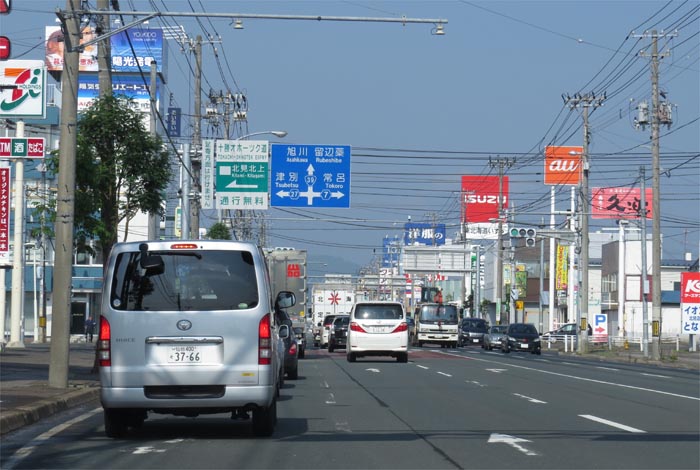 国道39号、北見トヨペット前からとん田通り交差点方向