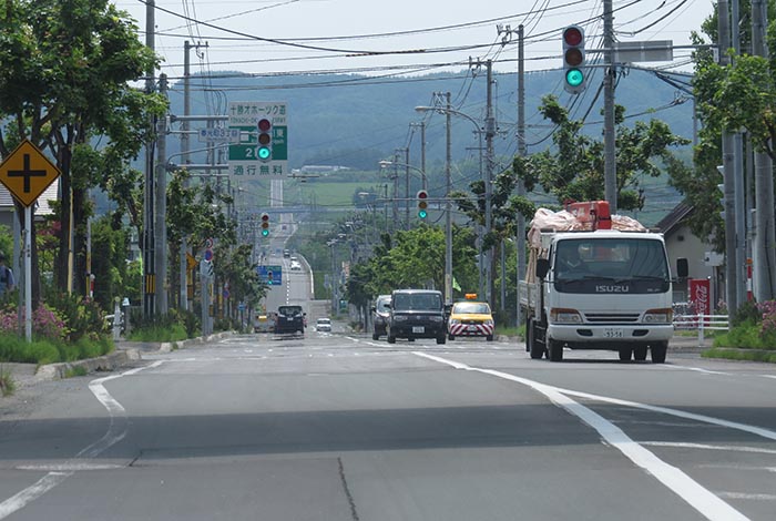 昭和通りの左は東7号線春光通りの柏陽駅方向