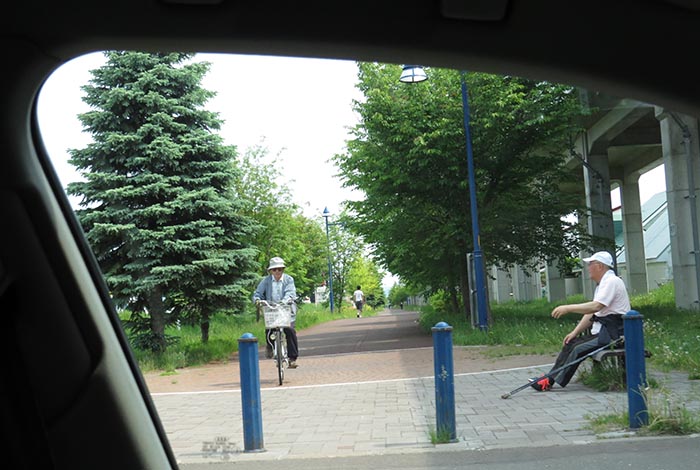 前方がJR石北本線高架橋、写真右が北見駅方向