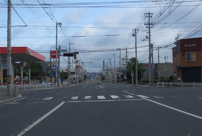 南岸通り、とん田通りの交差点から右は北光神社方向