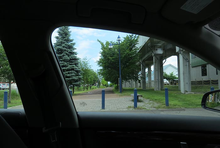 前方がJR石北本線高架橋、写真右が北見駅方向