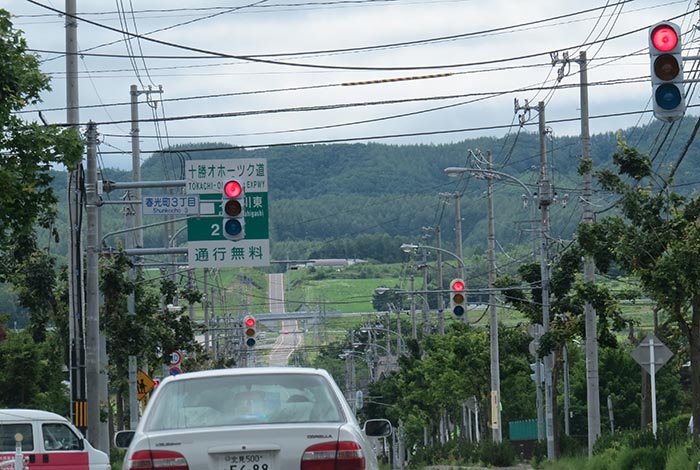 前方がJR石北本線高架橋、写真右が北見駅方向