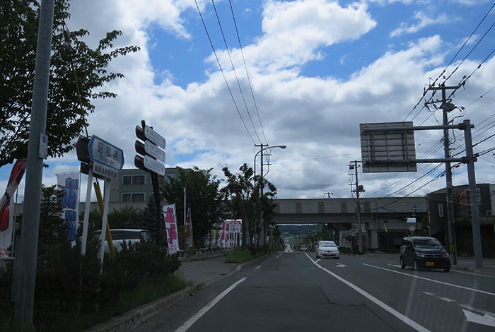 前方がJR石北本線高架橋、写真右が北見駅方向