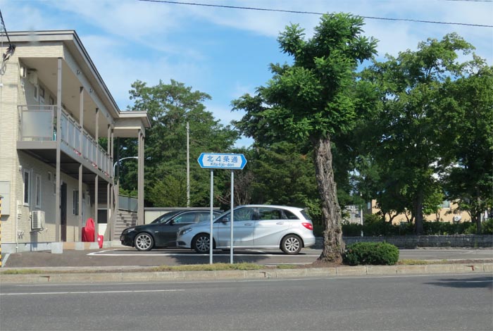 前方の街路樹の向こうが石北大通り