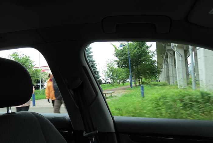 前方がJR石北本線高架橋、写真右が北見駅方向