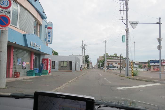 末広町の南岸通り、西4号線バス停前から野付牛自動車学校方向