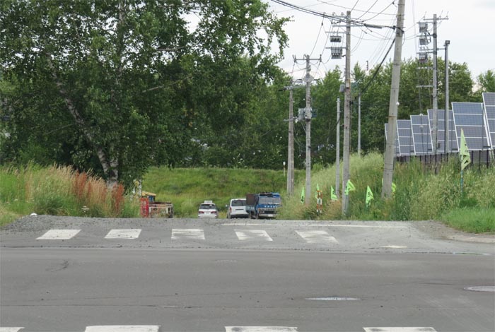 交差点から奥が無加川の右岸堤防で写真奥が国道39号方向