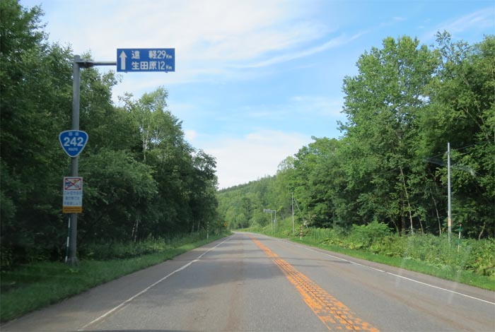 午後2時20分、国道242号、金華峠頂上側から下りで生田原の清里方向