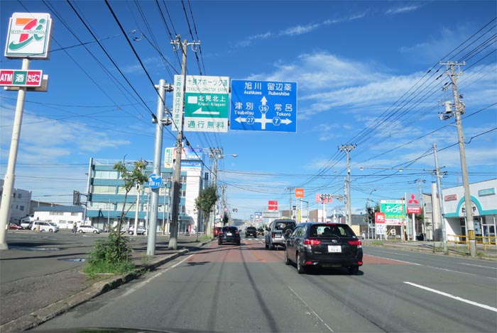国道39号、北見トヨペット前からとん田通り交差点方向