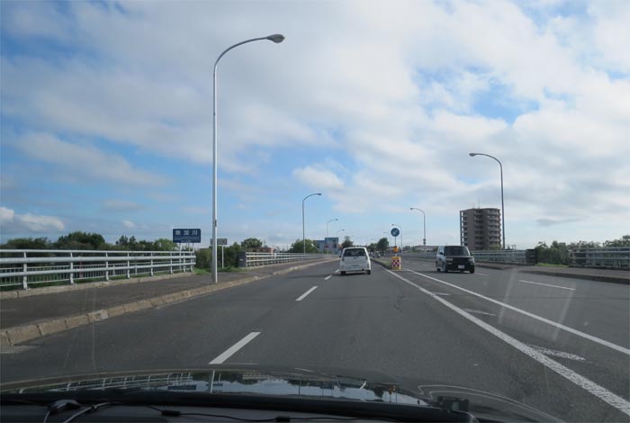 写真中央、堤防の向こうは無加川を挟んで工業技術センター前の西5号線南大通り交差点