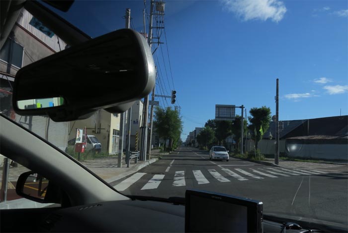 南岸通り、野付牛自動車学校前、奥がとん田通りの交差点