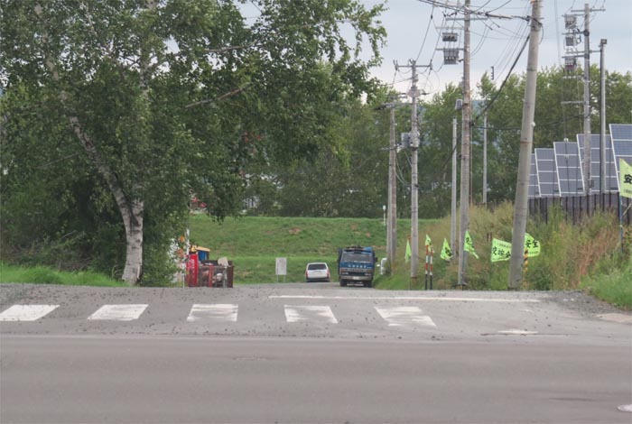 交差点から奥が無加川の右岸堤防で写真奥が国道39号方向