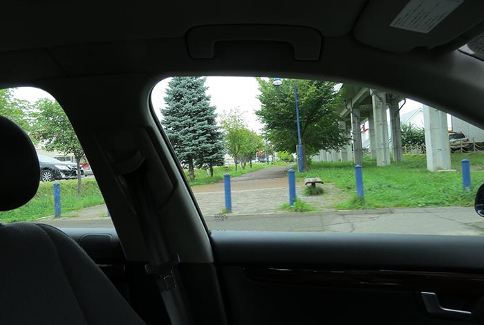 前方がJR石北本線高架橋、写真右が北見駅方向
