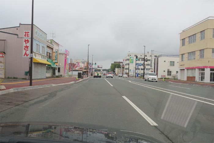 末広町の南岸通り、西4号線バス停前から野付牛自動車学校方向