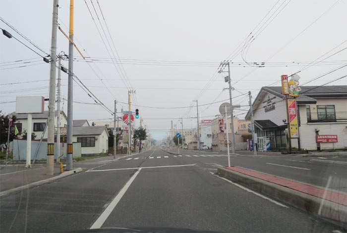 南岸通り、野付牛自動車学校前、奥がとん田通りの交差点