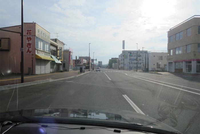 末広町の南岸通り、西4号線バス停前から野付牛自動車学校方向