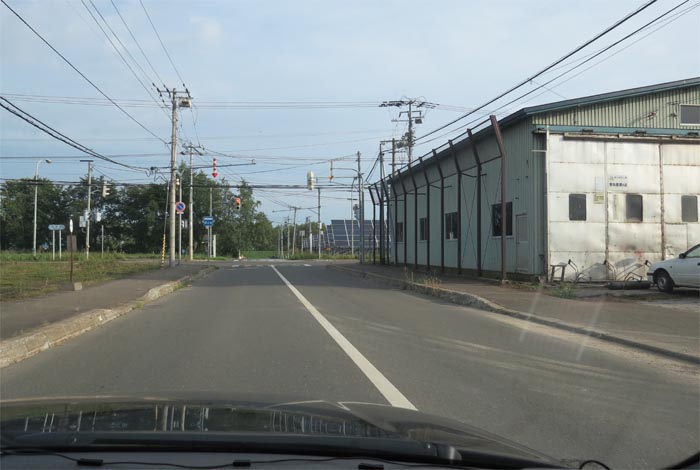 南岸通り、野付牛自動車学校前、奥がとん田通りの交差点