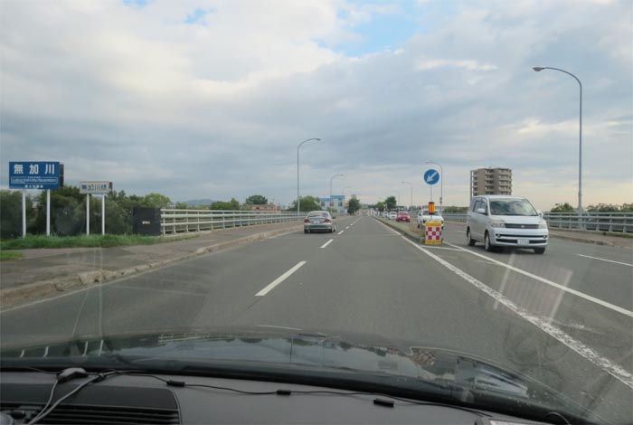 交差点から奥が無加川の右岸堤防で写真奥が国道39号方向