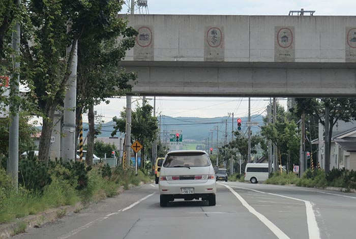 前方がJR石北本線高架橋、写真右が北見駅方向