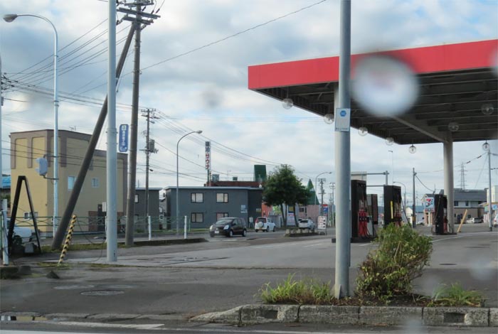 南岸通り、野付牛自動車学校前、奥がとん田通りの交差点