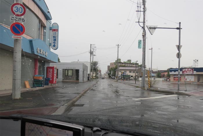 南岸通り、野付牛自動車学校前、奥がとん田通りの交差点