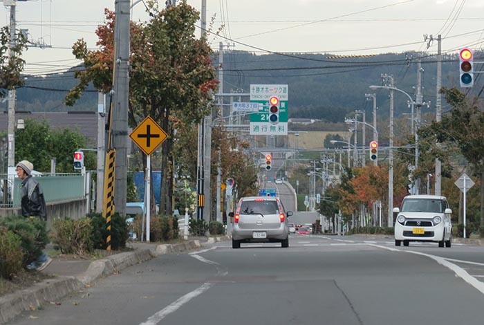 昭和通りの左は東7号線春光通りの柏陽駅方向