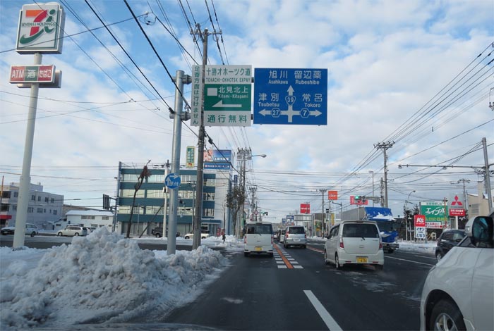 国道39号、北見トヨペット前からとん田通り交差点方向