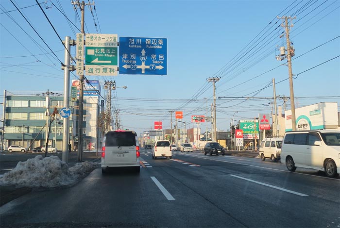 国道39号、北見トヨペット前からとん田通り交差点方向