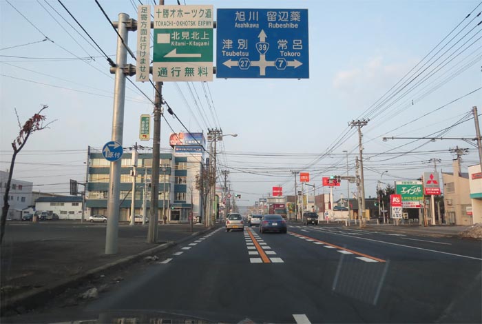 国道39号、北見トヨペット前からとん田通り交差点方向