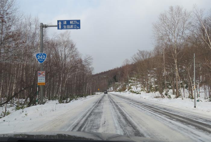 午後2時20分、国道242号、金華峠頂上側から下りで生田原の清里方向