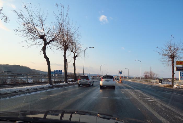 午前7時50分、とん田通り、北見中央病院