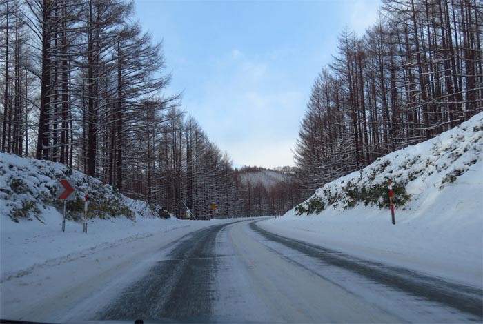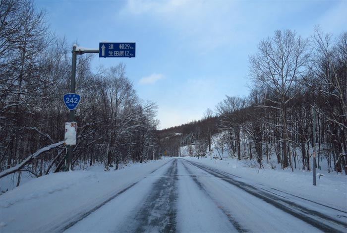 午後2時20分、国道242号、金華峠頂上側から下りで生田原の清里方向