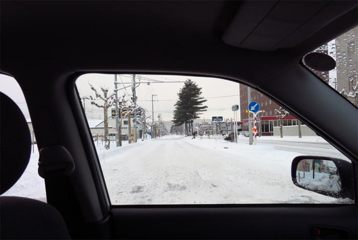 午前7時50分、北4条通りの国道39号交差点から緑園通り方向