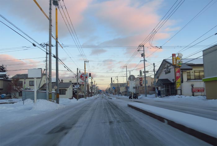 南岸通り、とん田通りの交差点から右は北光神社方向