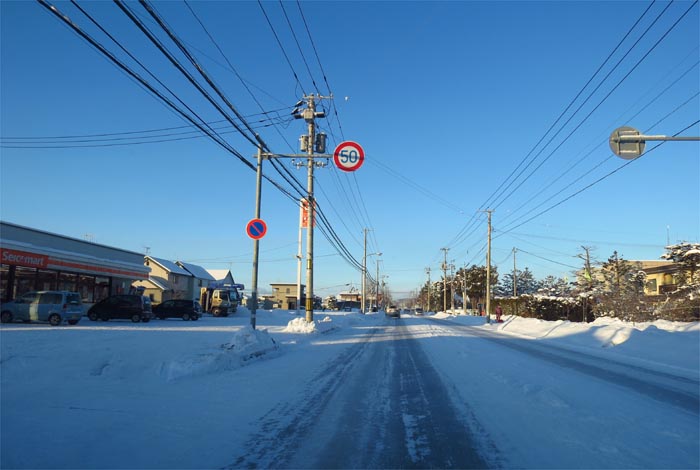 午前7時50分、南岸通り、野付牛自動車学校前から無加川町方向