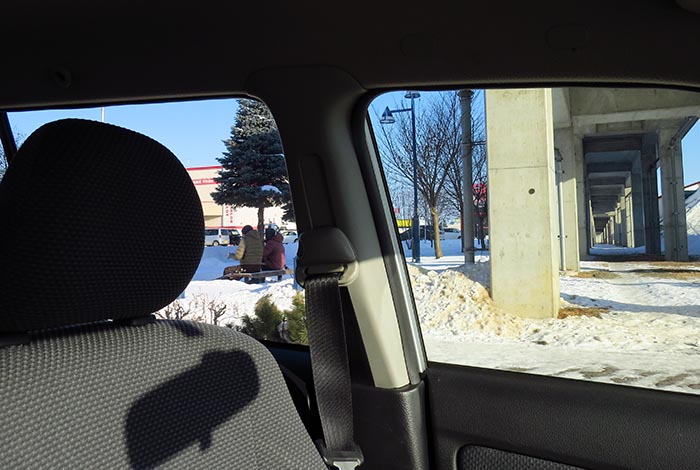 前方がJR石北本線高架橋、写真右が北見駅方向