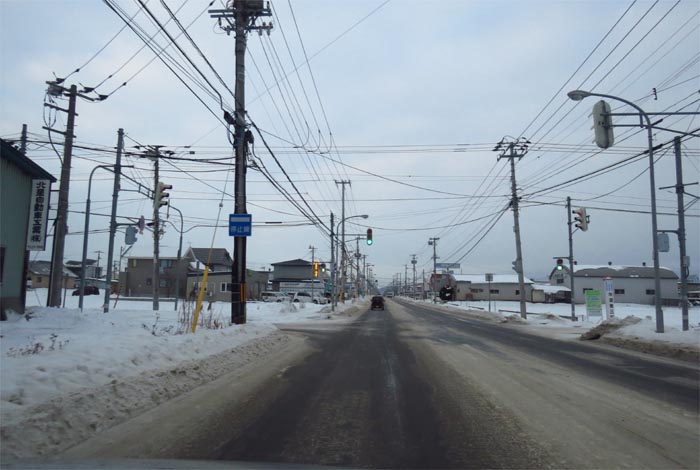 午前7時50分、南岸通り、野付牛自動車学校前から無加川町方向