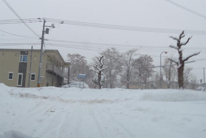 午前7時40分、松浦水産駐車場裏の通りを北3条通り側から北4条通り方向