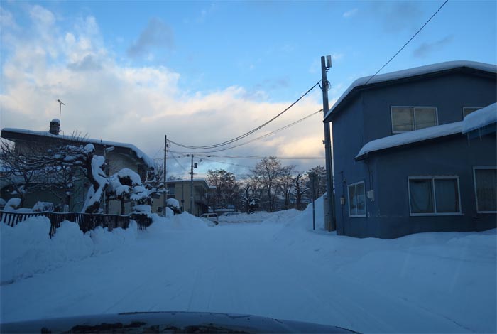 午前7時40分、松浦水産駐車場裏の通りを北3条通り側から北4条通り方向
